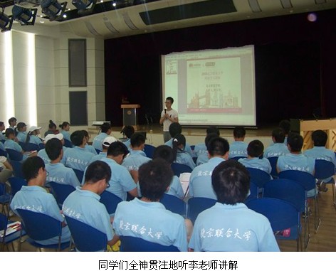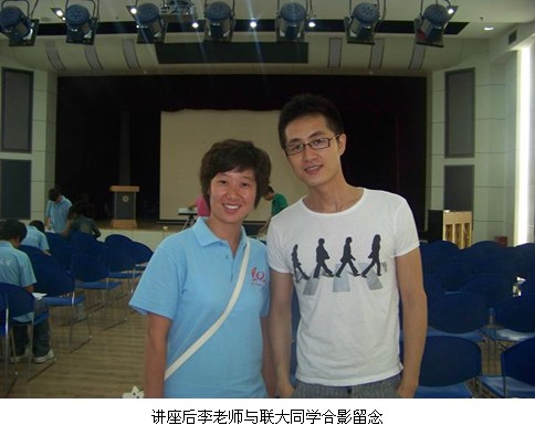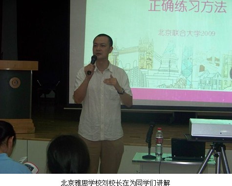 第一场讲座由北京雅思学校刘洪波校长为同学们讲解"英语听、说、读、写的正确练习方法",刘校长拥有多年丰富的英语教学经验,培养出大批新托福、雅思、四六级、考研英语名师,在英文词汇记忆法上有着独特的造诣。刘校长别具风格的语言及授课方式得到了现场200多名同学一次又一次的热烈掌声,他那流利的英语朗诵方式更是掀起会场的高潮,也使同学们对英语学习产生了更加浓厚的兴趣。在轻松愉快的气氛中,同学们对刘校长及北京雅思学校有了更深的了解。讲座结束后,很多同学对北京雅思的课程进行了咨询并现场报名,同学们都围着让刘洪波校长签名并合影留念。