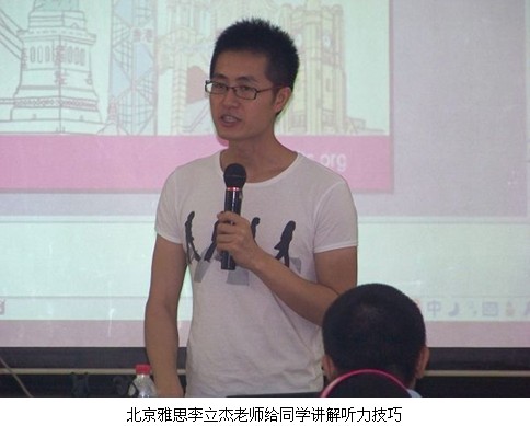 第二场由北京雅思听写双料新人王李立杰老师与同学们分享"听力与写作技巧",李立杰老师是北雅听力写作名师,英语专业八级,16岁考入大学,22岁清华大学硕士毕业,曾任CCTV9节目编导,中国国际广播电台中英文播音,全国公共英语等级考试委员会高级口语主考官,2008北京奥运会非注册记者新闻中心高级口译员,有丰富的教学经验和自己独特的教学研究方法。讲座上,李老师首先用不同国家英语的发音方式示范给同学们听,让同学们知道听力最重要的是多听多练习。接着,李老师引用中国不同地方的方言分析讲解了听力的关键所在,引的会场一片笑声。最后,李老师与同学们分享了自己在求学过程中的学习方法及经历,同学们都听的津津有味。一个半小时的讲座在与同学们的互动问答中结束,与会的上百位同学意犹未尽,北雅的课程顾问及老师在讲座后仍热情地为同学们讲解。