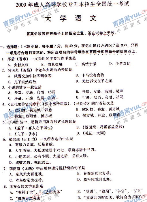 成考项目推荐报名推荐热线:010-51297401 网站地图育路版权与免责声明① 凡本网注明稿件来源为"原创"的所有文字、图片和音视频稿件,版权均属本网所有。任何媒体、网站或个人转载、链接转贴或以其他方式复制发表时必须注明"稿件来源:育路网",违者本网将依法追究责任; ② 本网部分稿件来源于网络,任何单位或个人认为育路网发布的内容可能涉嫌侵犯其合法权益,应该及时向育路网书面反馈,并提供身份证明、权属证明及详细侵权情况证明,育路网在收到上述法律文件后,将会尽快移除被控侵权内容。 成考动态一周TOP10成考备考攻略 |