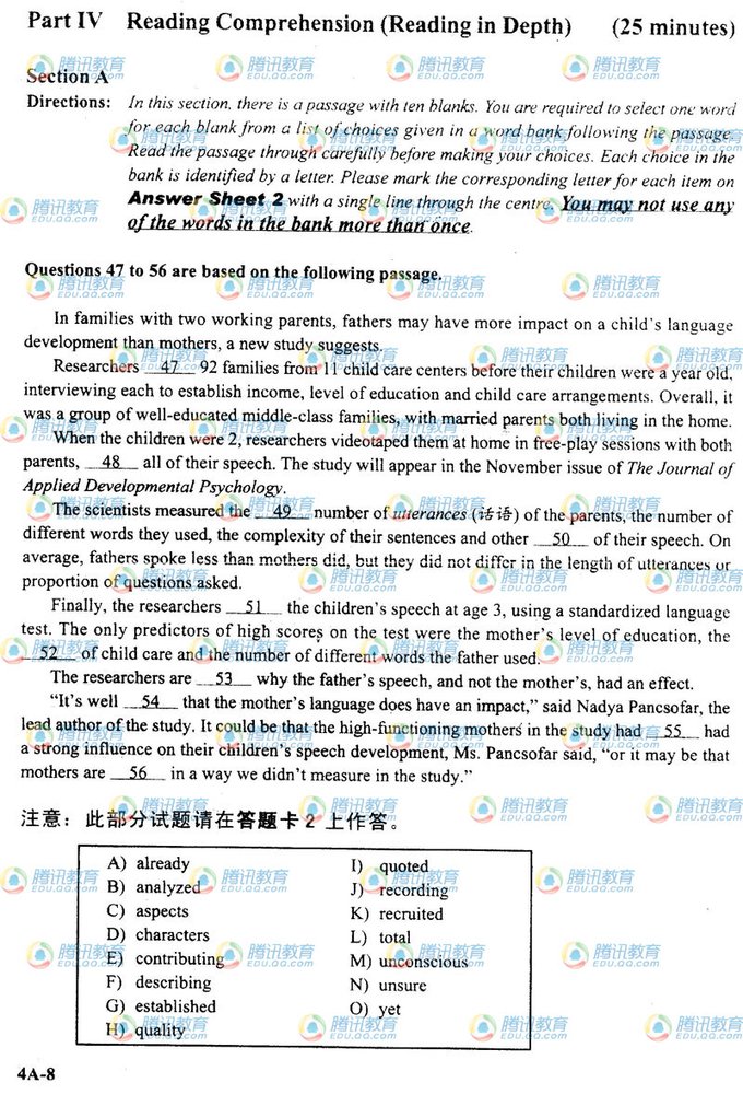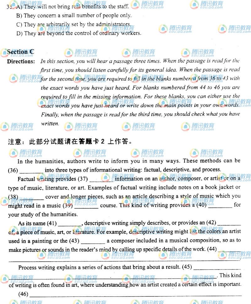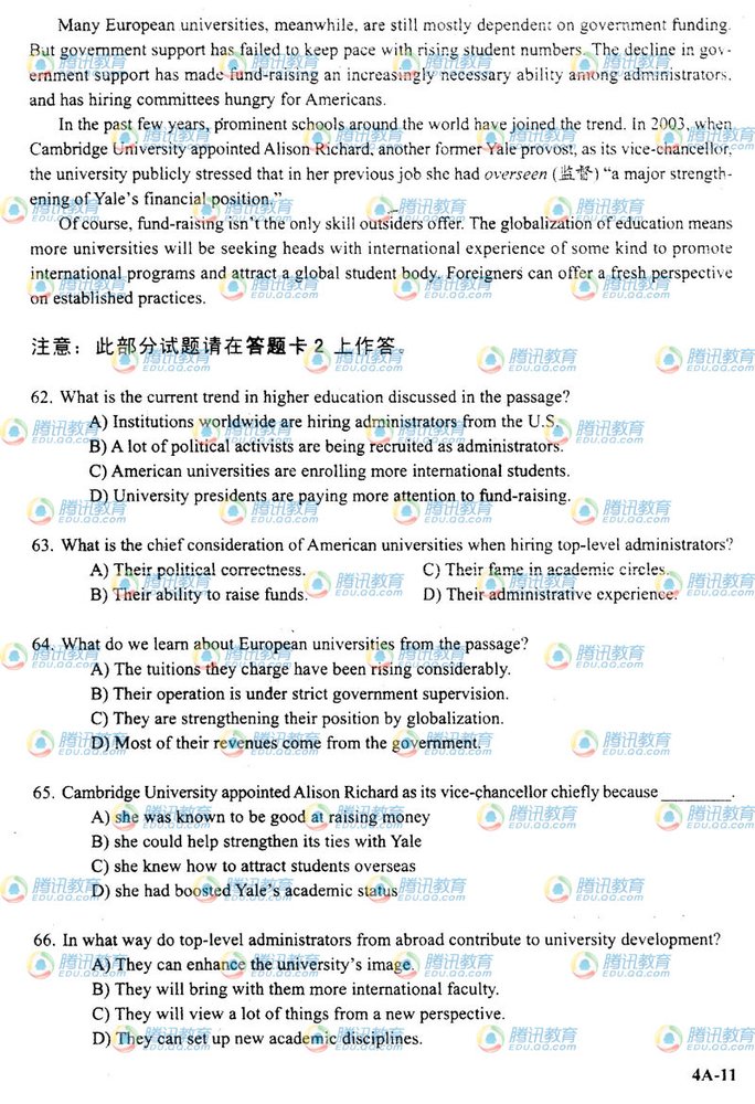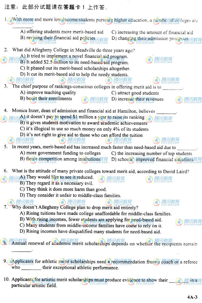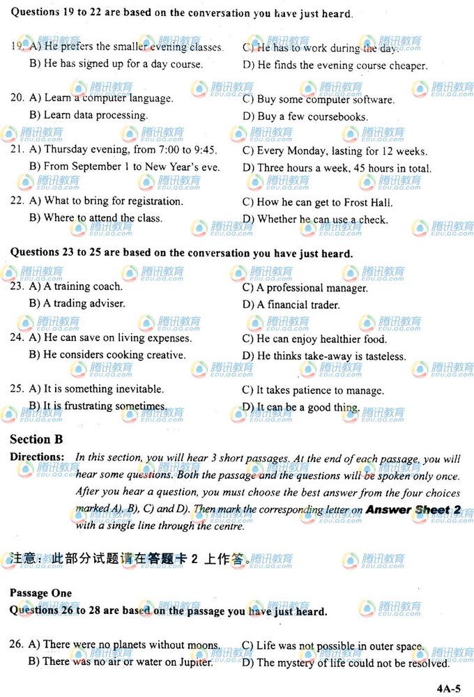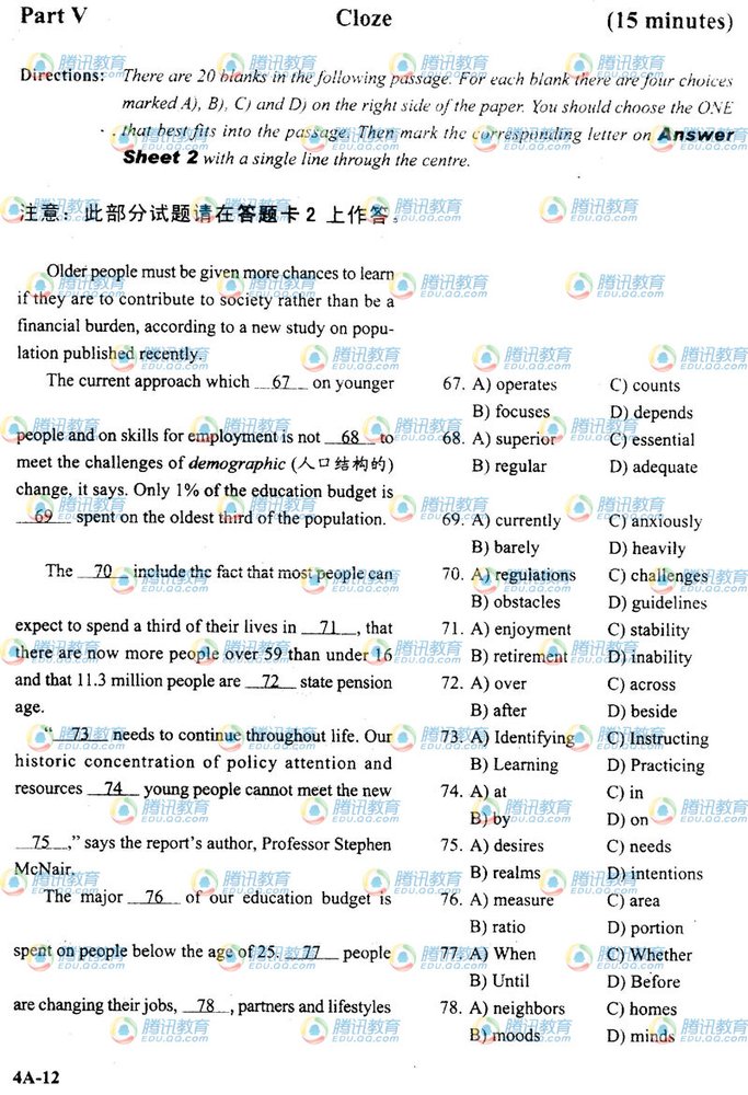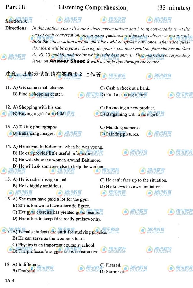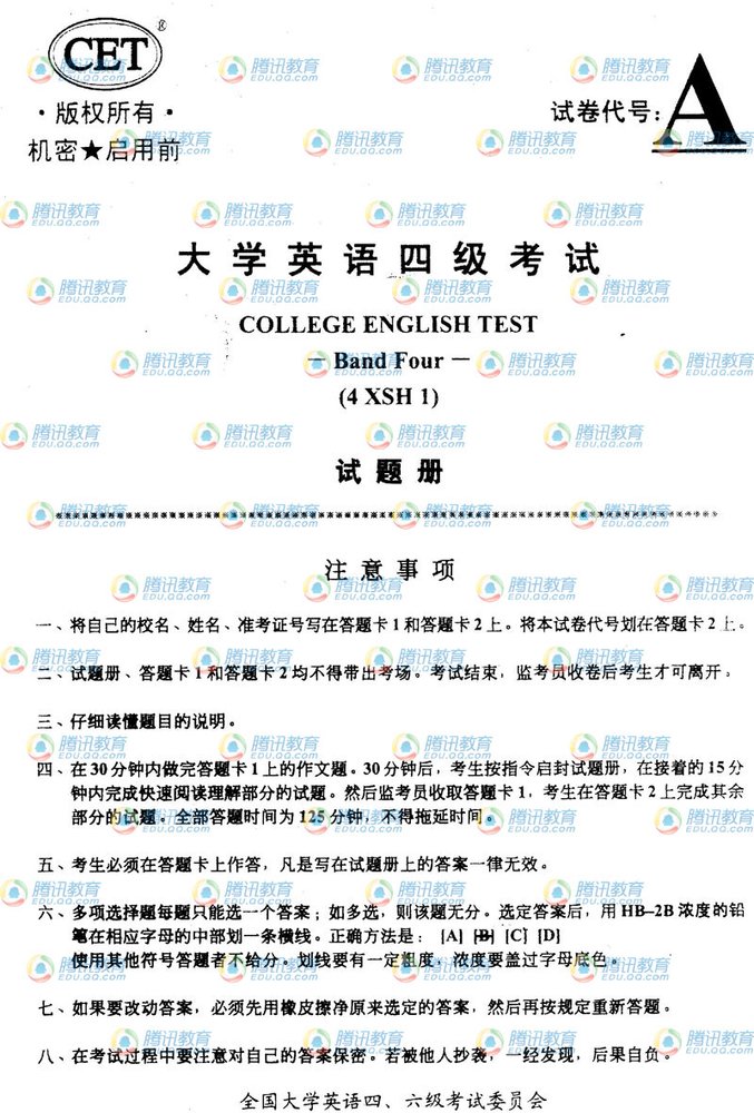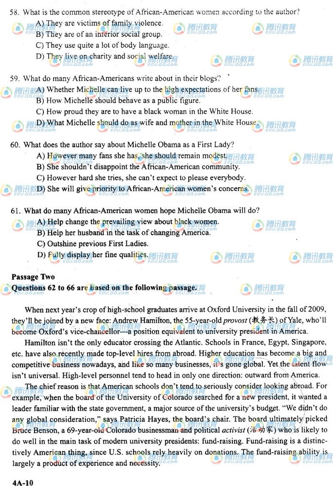 阅读下一篇:2009年12月大学英语四级考试真题(B卷) |