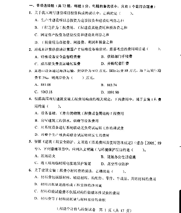 当前位置:育路教育网 > 造价工程师 > 造价工程师计价与控制 > 造价工程师计价与控制历年真题