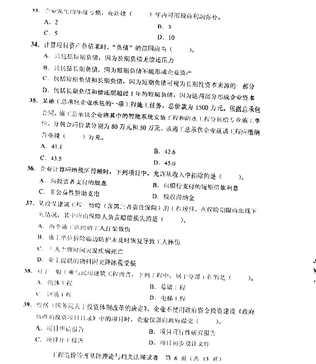 2011年造价师考试理论与法规试题及答案(4)
