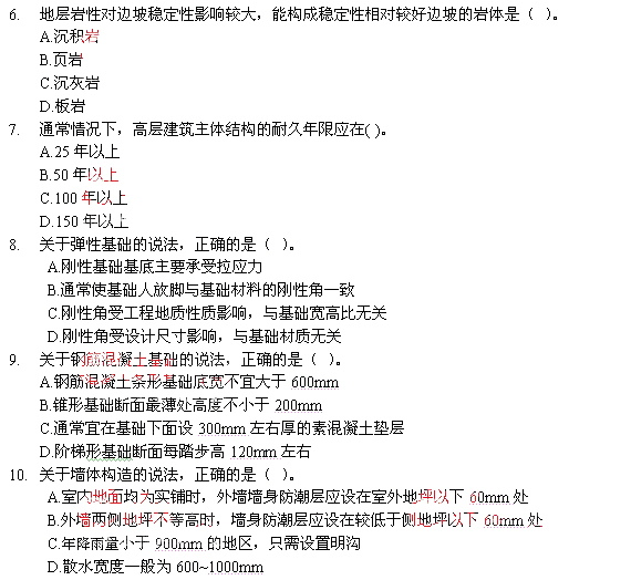当前位置:育路教育网 > 造价工程师 > 造价工程师技术与计量(土建) > 造价工程师技术与计量(土建)历年真题