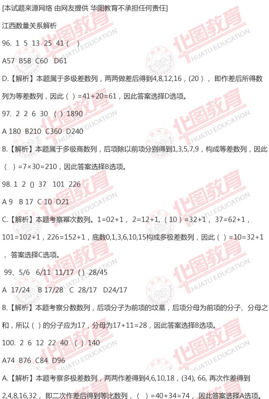 2012年421联考江西省公务员联考数量关系真题解析