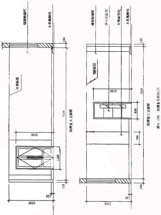 某经理室装修工程如图6.I所示。间壁轻隔墙厚120mm,承重墙厚240mm.经理室内装修做法详见答题纸表6.I.1“项目名称” 中所列的内容。踢脚、墙面门口侧边的工程量不计算,柱面与墙踢脚做法相同,柱装饰面层厚度50mmm.消耗量定额是按《建设工程工程量清单 计价规范》的计算规则编制的。