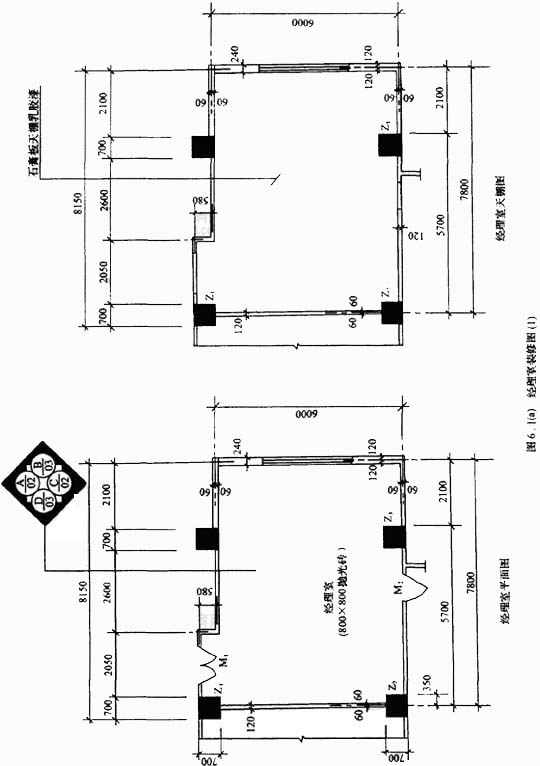 1.根据图6.工所示内容和答题纸表6.I.1“分部分项工程量清单”所列项目,依据《建设工程工程量清单计价规范》附录B 的计算规则,计算经理室内装修工程量。范围包括:A、C两个立面、柱面(Z1、Z2、Z3)、地面、踢脚线、天棚。将相应的计量单位、计算式 及计算结果填入答题纸表6.I.1“分部分项工程量清单”的相应栏目中。