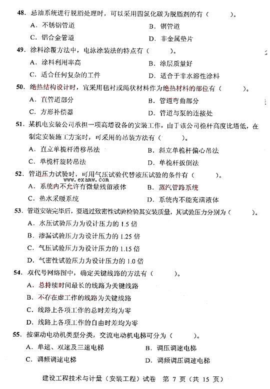 2007年度全国造价工程师执业资格考试《建设工程技术与计量(安装)》真题(7)