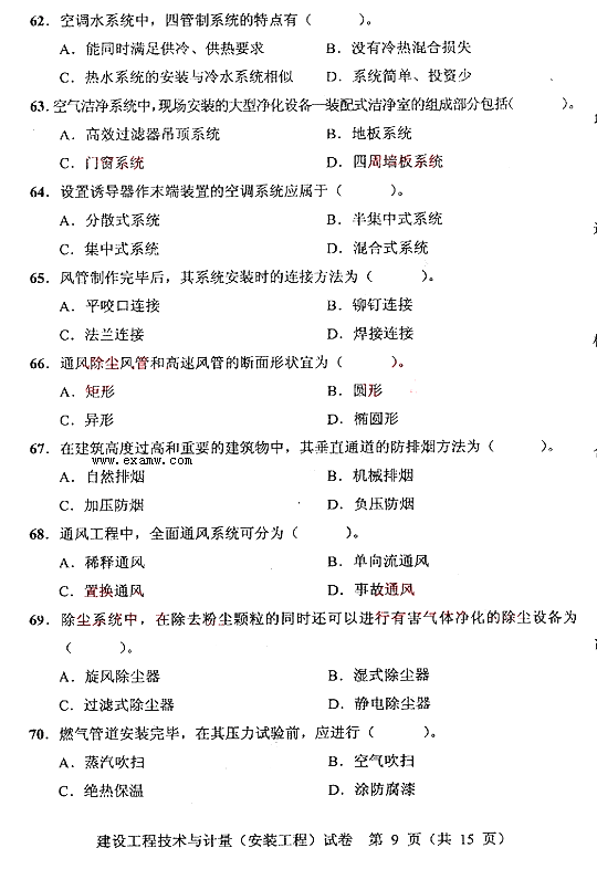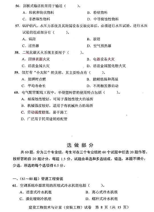2007年度全国造价工程师执业资格考试《建设工程技术与计量(安装)》真题(8)