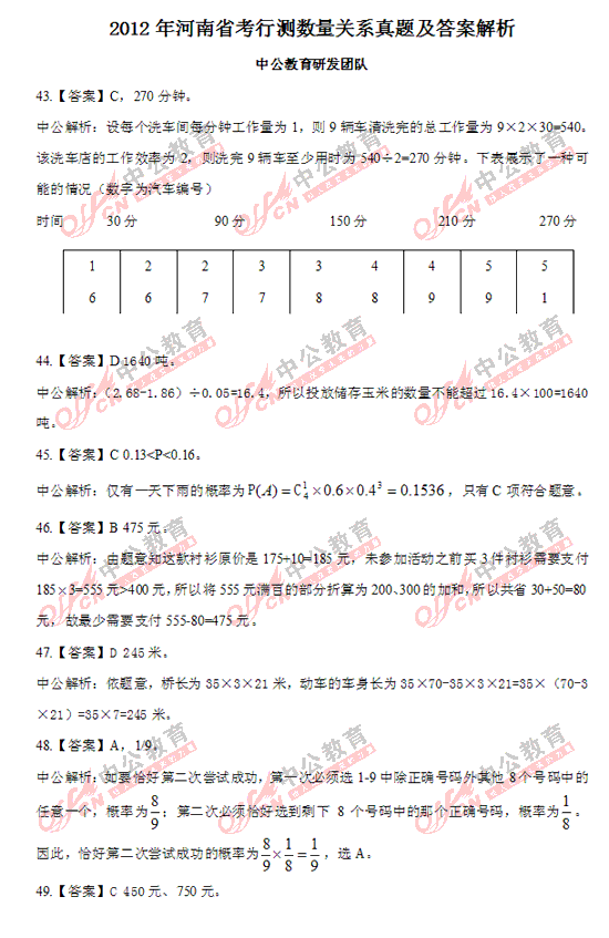 2012河南公务员行测考试真题及答案解析(数量关系)