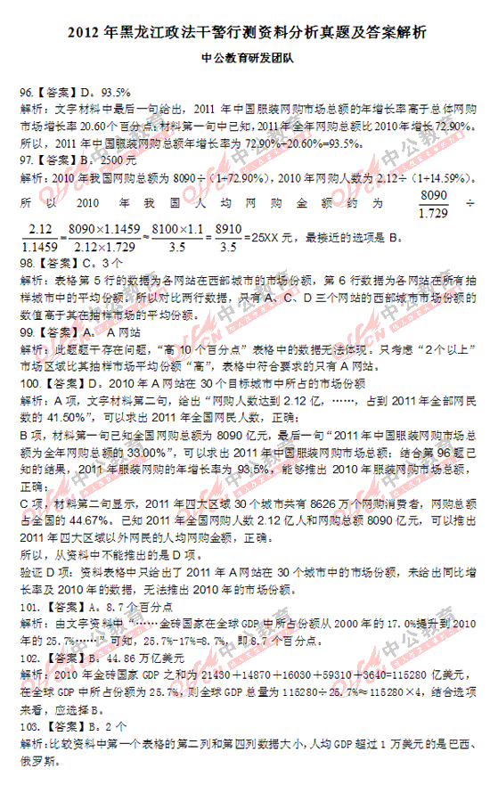 2012黑龙江政法干警考试真题及答案(资料分析)