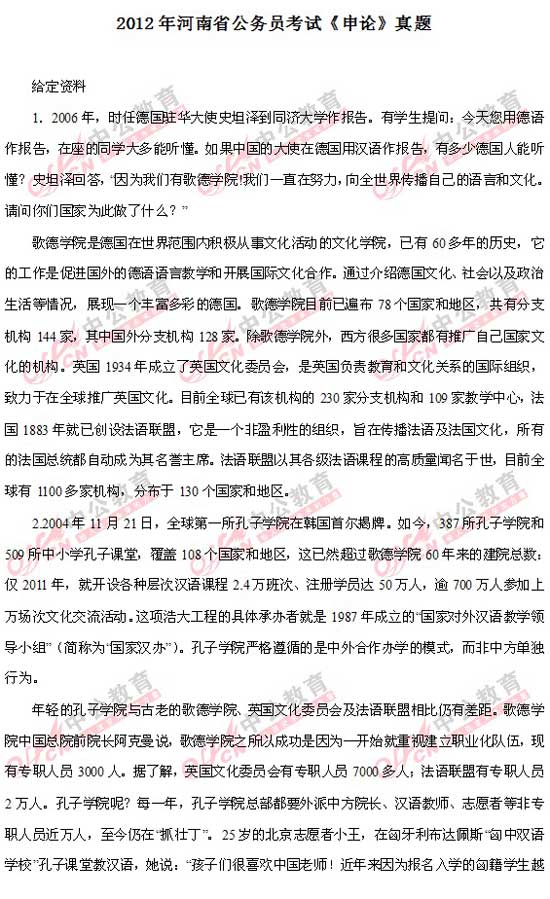 2012年河南省公务员考试申论真题及答案解析