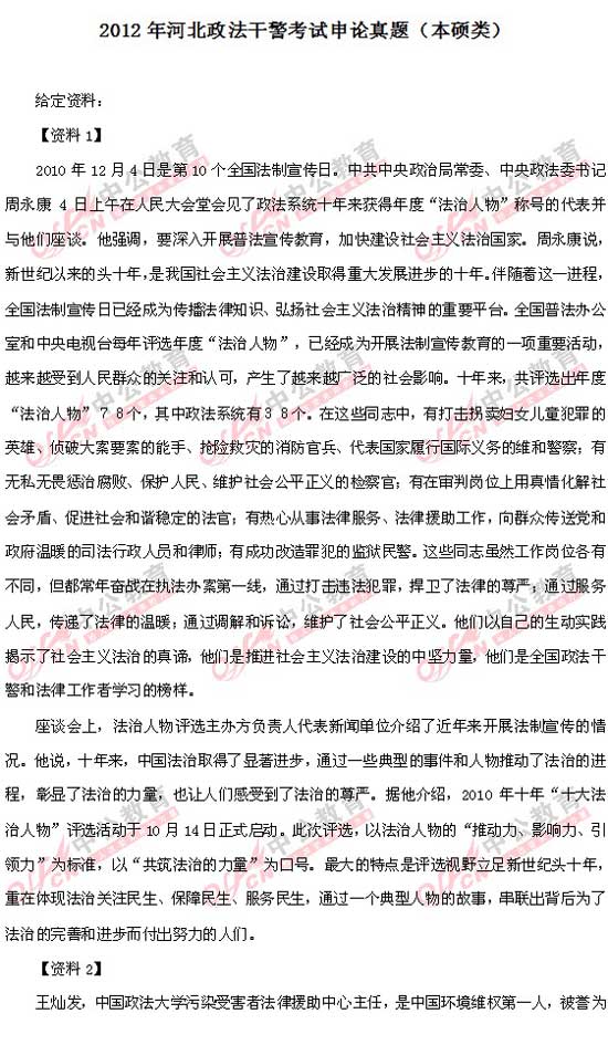 2012河北省政法干警考试申论真题(本硕类)