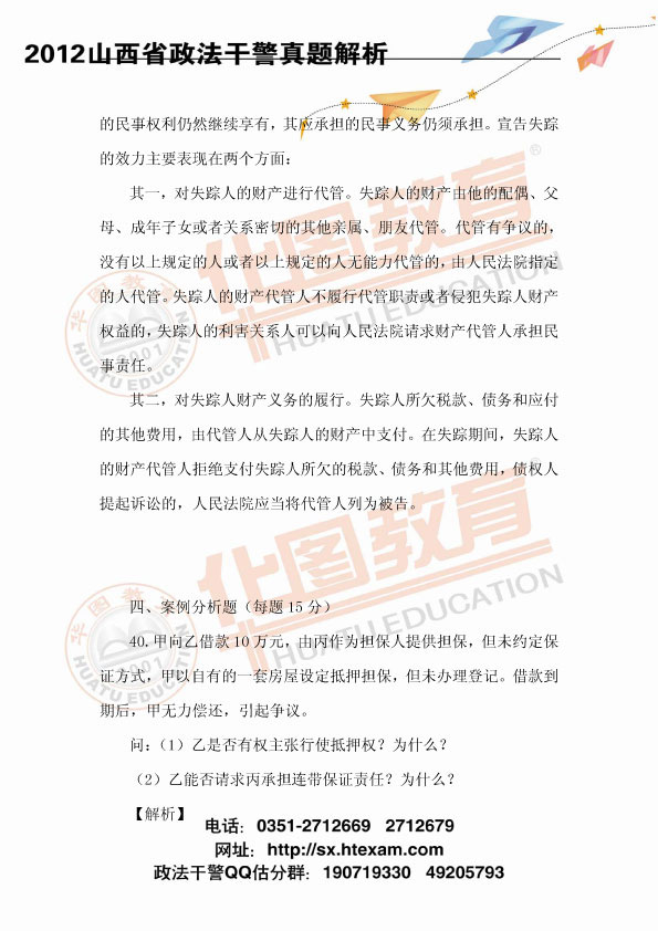 2012山西政法干警考试民法真题及参考答案解析