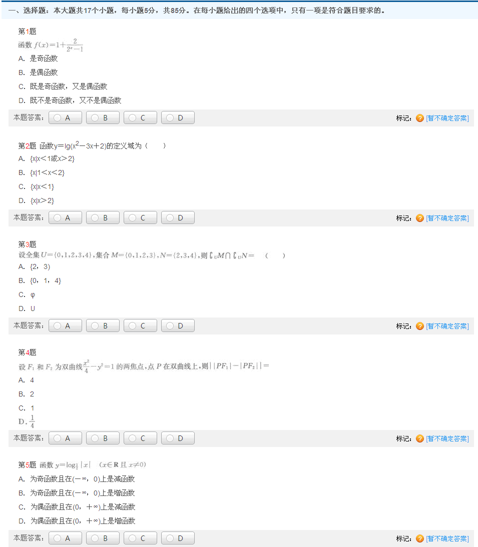 2012成考理工数学(农医类)高起点冲刺试卷(5)