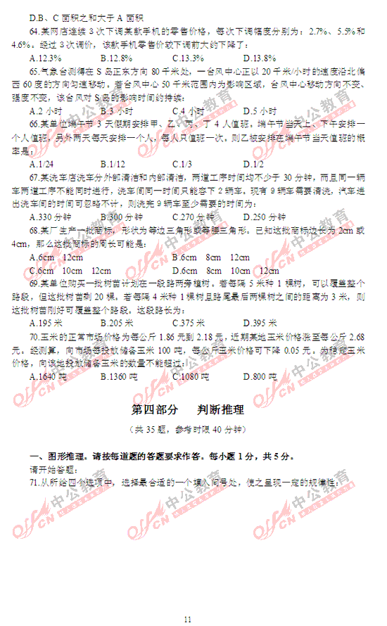 2012年陕西政法干警《行测》考试真题3(本硕)