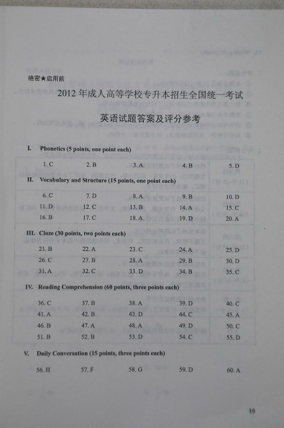 | 2012成考真题解析专题 | 高起点真题答案 | 专起点真题答案 | 录取分数线及成绩查询预告 |