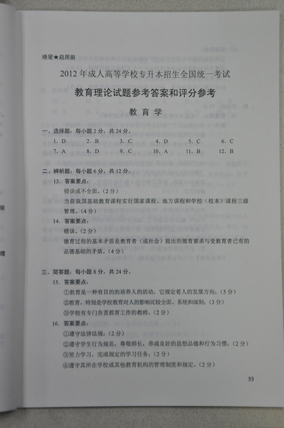 | 2012成考真题解析专题 | 高起点真题答案 | 专起点真题答案 | 录取分数线及成绩查询预告 |