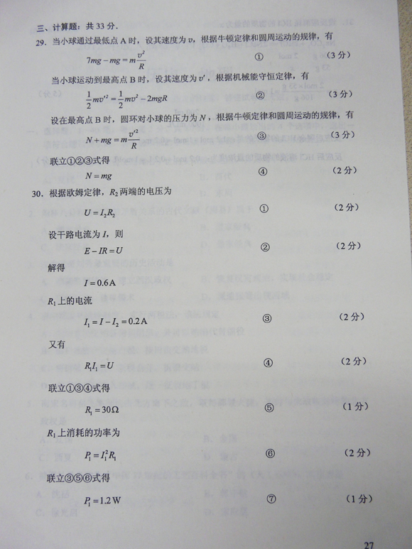 2012成人高考试题及答案—物理化学答案(高中起点)
