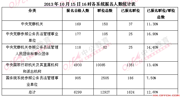 2013年国家公务员考试报名数据分析(截止到10月15日16时)
