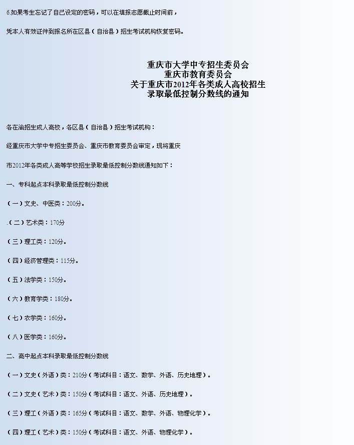 重庆:2012年成人高考志愿填报安排