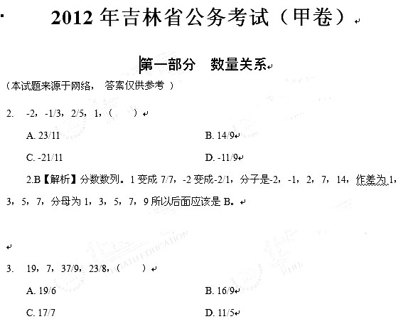 2012吉林公务员行测真题及答案:数量关系(甲级)