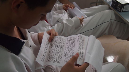 北京新桥外国语高中学校的学生看父母给自己的信