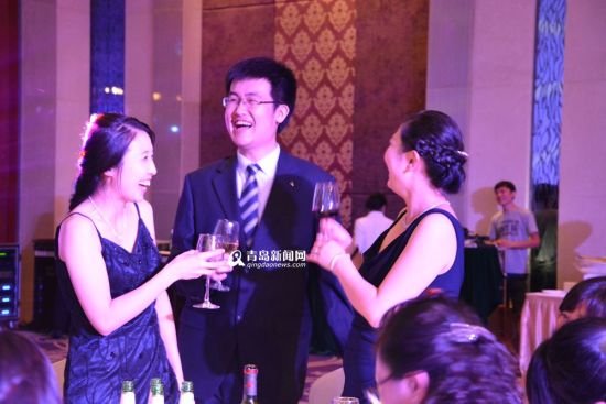 去年青岛某国际学校在酒店举行毕业舞会,学生手持红酒,身穿礼服西装