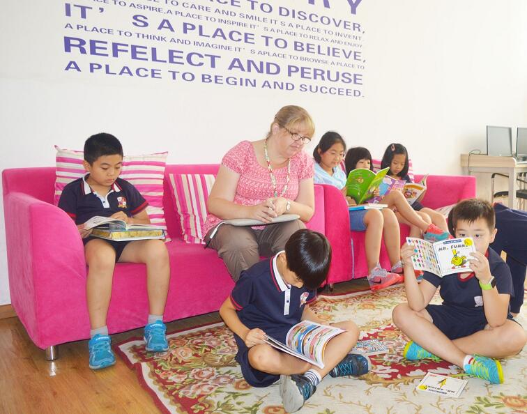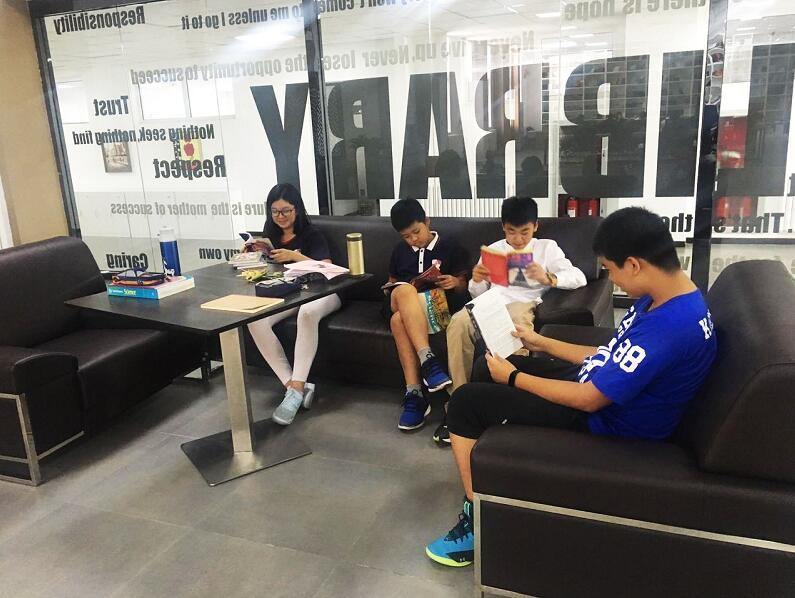 在午后轻柔的阳光下,学生坐在沙发上亦或是地毯上专注的翻阅着书籍,似乎空气中都散发出纸浆的味道。这里是一个神奇的地方,它能让人变得安静、内敛、充盈着每个学生的内心世界。