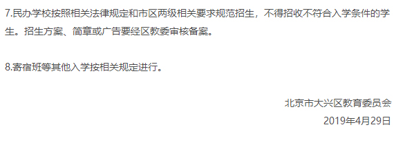 北京市大兴区教育委员会关于2019年义务教育阶段入学工作意见