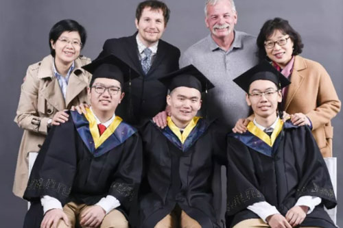 ▲ 李泽阳、王天一、宋雨澄和老师们合影