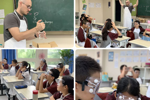 Amari老师将护目镜派发给了同学们,孩子们便猜到这将是一节妙趣横生的科学课,老师通过多种实验的方式,从化学和物理的学科内容带领孩子们进入丰富的科学世界。