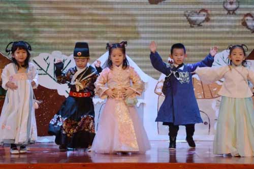 史努比班的小朋友款款演绎“大中国”的自豪感;蓝精灵班的小朋友充满气势地舞出“中国范儿”;维尼班的小朋友手持竹简诉说“中华孝道”。他们都在为传统文化和国家民族欢呼喝彩,也饱含了对于新年的期待和向往!