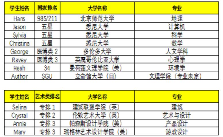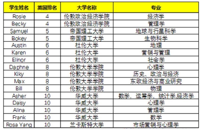 2021年申请英国大学的学生,其中申请到英国TOP10大学的学生有16人占比40%,申请到英国TOP20大学的学生有28人占比70%,申请英国TOP30大学的学生有38人占比96%。