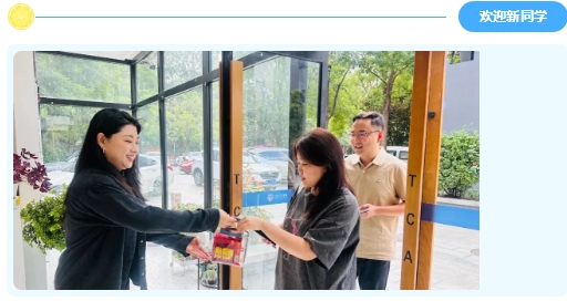 比如:开学首日,泛洋文华学校的老师就早早在校门口迎接新生的到来。小小的仪式感必须拉满,老师们精心准备的开学寄语、零食小福袋,第一时间送到手中,从今天开始,你们就是TCA的一员啦!