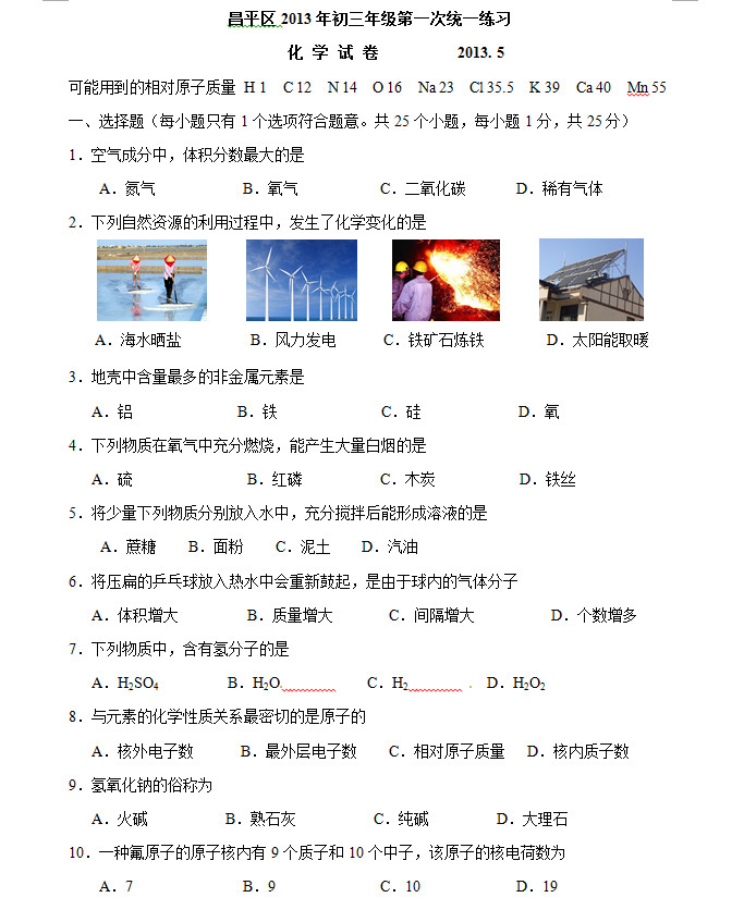 2013年北京市昌平中考一模化学考试已结束,育路小编为各位家长与考生整理了考试试卷及答案,以供大家参考: