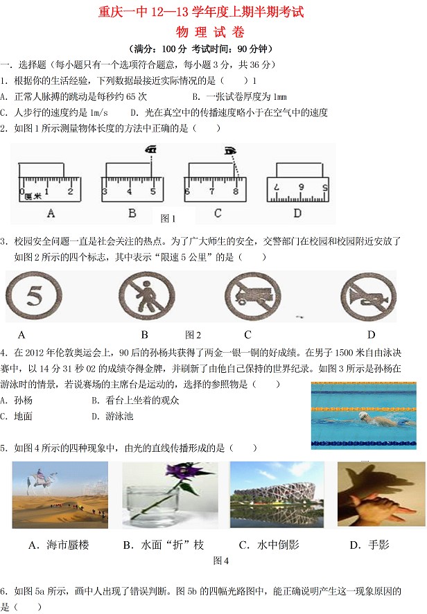 2014初三上学期期末考试即将迎来,学生们都开始了备考阶段。重庆s一中初中物理上学期期末考试真题汇编,大家可以根据自己的不足强化练习。
