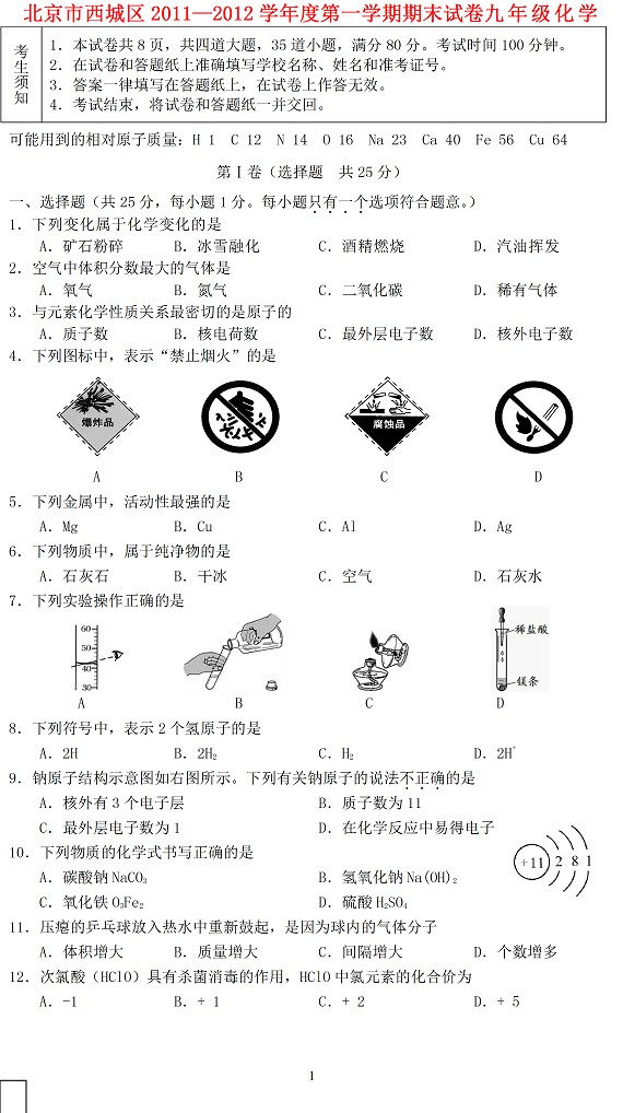 2014初三上学期期末考试即将迎来,学生们都开始了备考阶段。北京西城区初中化学上学期期末考试真题汇编,大家可以根据自己的不足强化练习。