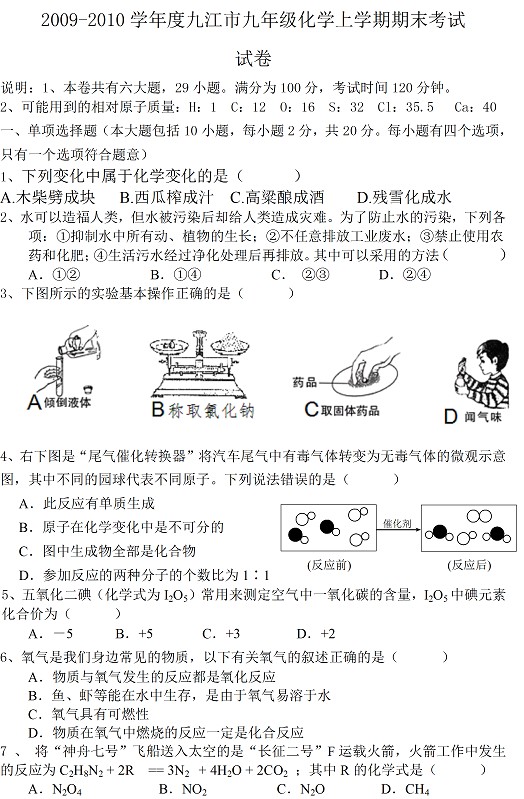 2014初三上学期期末考试即将迎来,学生们都开始了备考阶段。江西九江市初中化学上学期期末考试真题汇编,大家可以根据自己的不足强化练习。