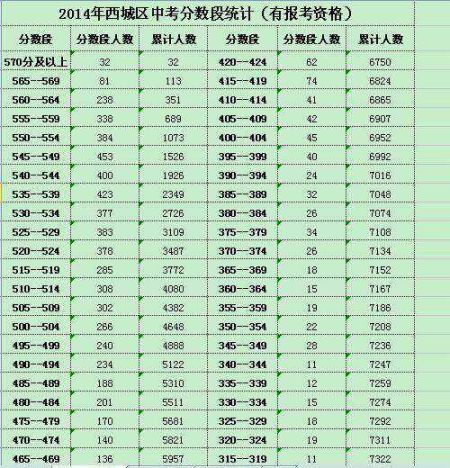 2014北京中考成绩已公布,考生可登录北京教育考试院或本区县中招办网站。下图为2014北京西城区中考各分数段人数,其中500分以上的同学为4648人。若同学或家长对北京国际高中感兴趣可电话咨询育路专业的择校顾问老师:010-51295864 13261310974,咨询老师会为您私人定制最适合的院校。