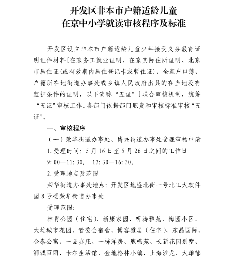 大兴开发区教委发布2017年大兴开发区非本市户籍适龄儿童少年入学审核实施细则,今年非京籍幼升小入学需要准备哪些证件?非京籍幼升小入学证件审核部门是什么?证件时限要求有哪些呢?下面为大家分享政策原文件。