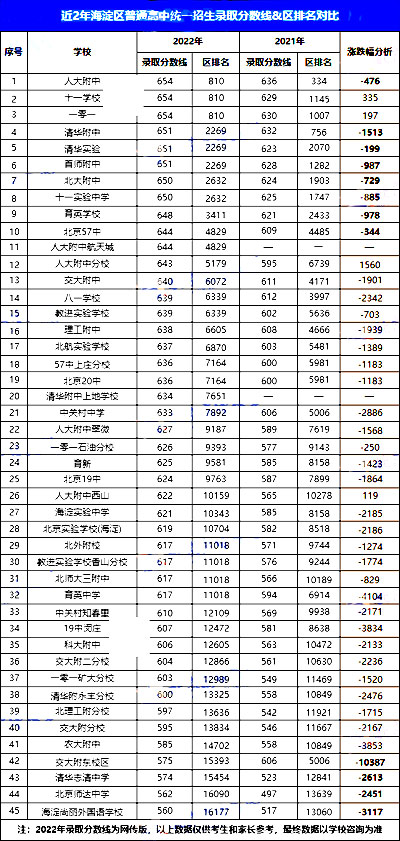 总结:1、上述海淀区各校2022中考录取分数线为考生分享,仅供参考;部分学校录取分数线未收集到,欢迎补充。