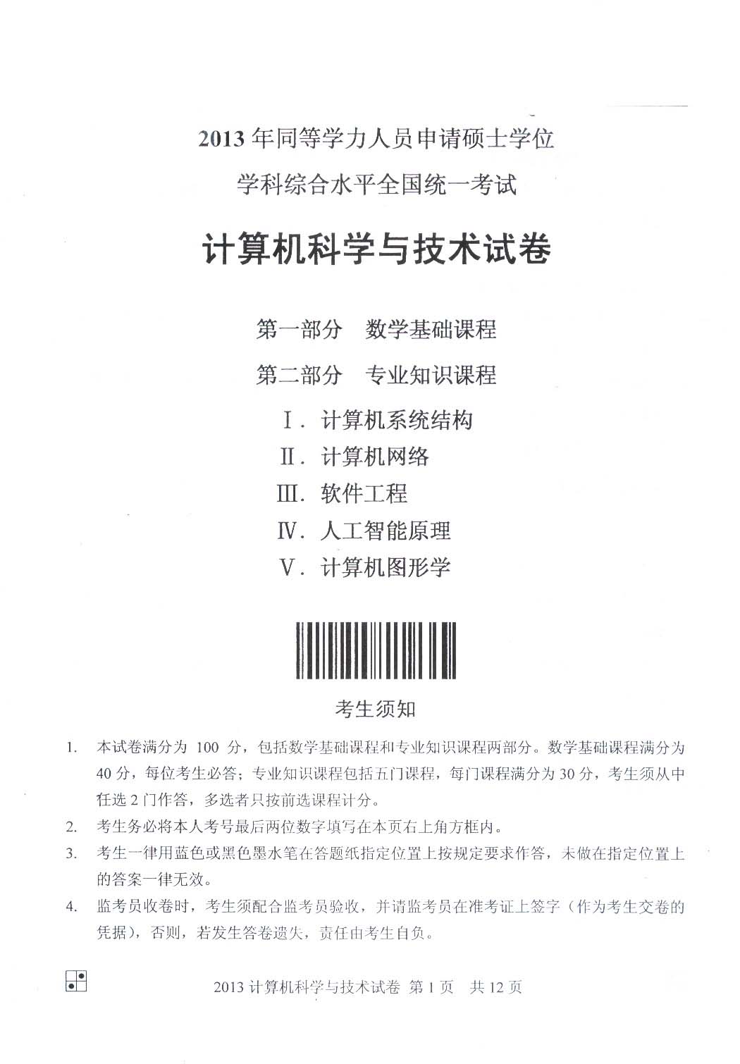 2013同等学力申硕综合真题:计算机科学与技术