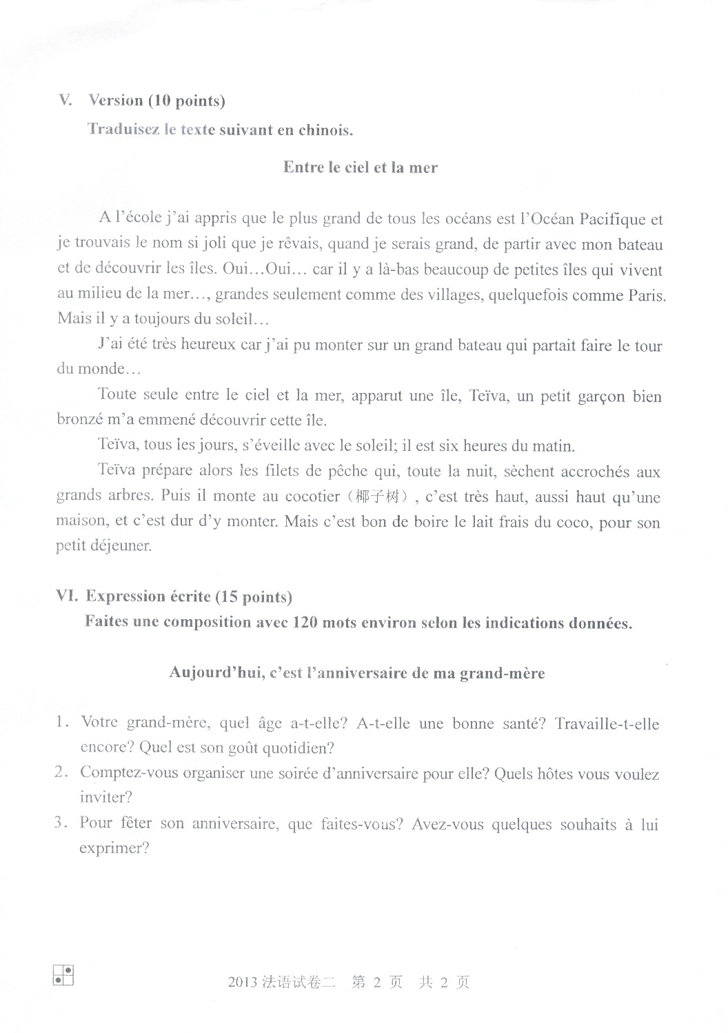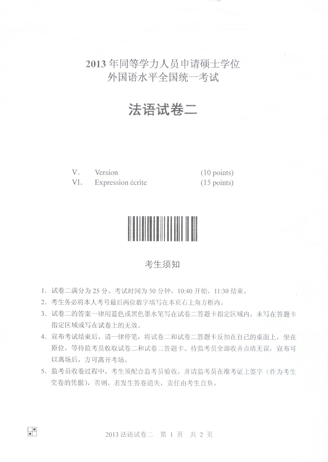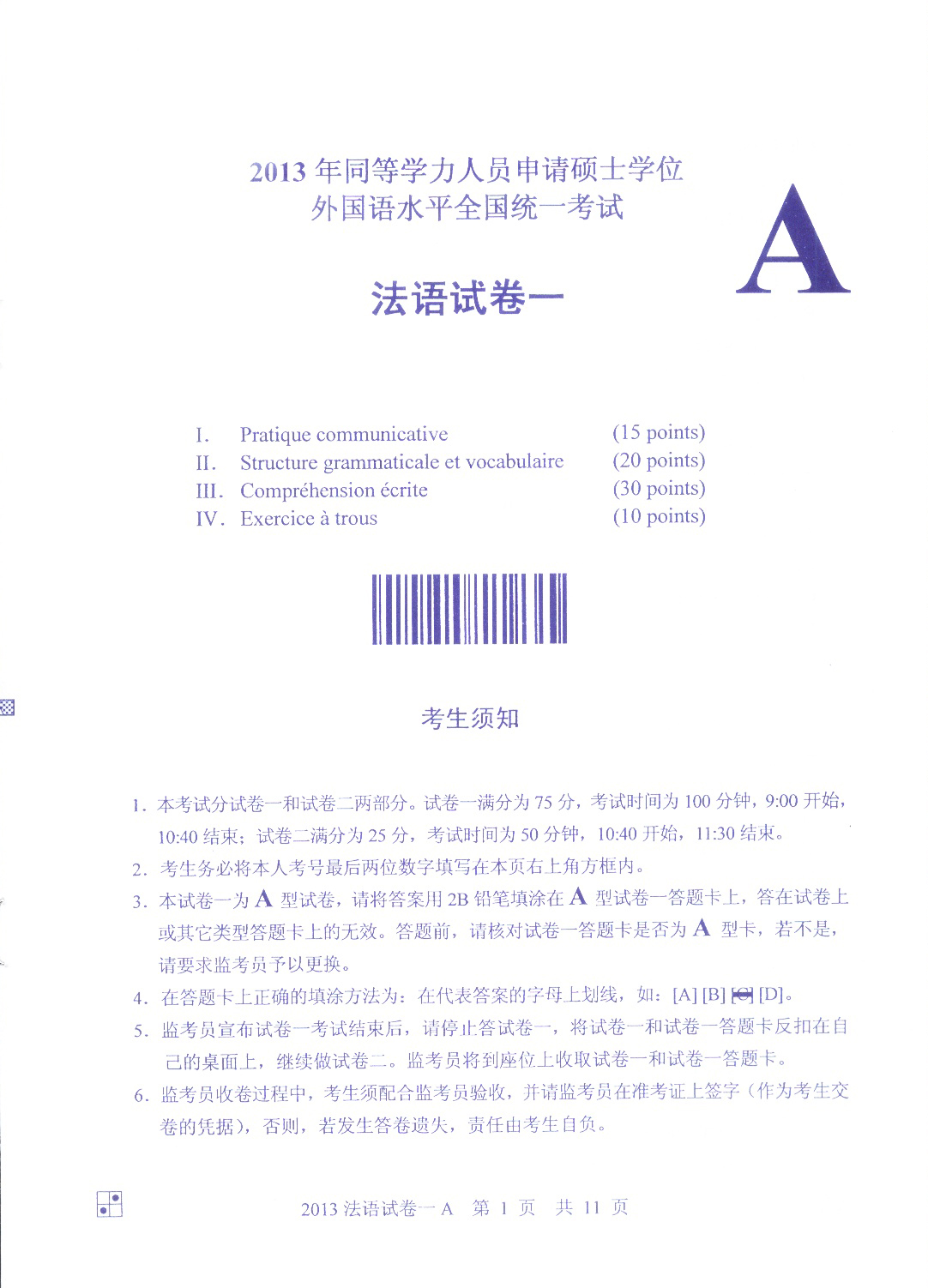 2013同等学力申硕法语真题(A卷)