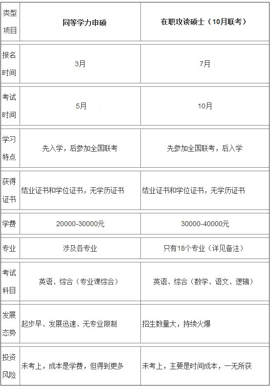 对于在职研究生报考方式该如何选,相信大家看到同等学力和十月联考优劣对比一览表之后一定会有所了解