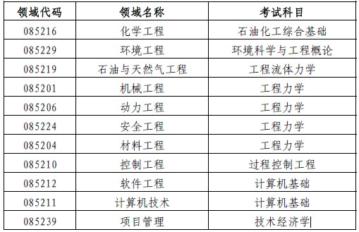 各专业领域专业笔试科目见下表: 领域代码