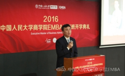 5月28日,中国人民大学商学院2016EMBA春季班开学典礼在北京隆重举行。商学院院长毛基业教授引用世界知名管理学教授斯蒂芬·科维倡导的“以终为始”来勉励EMBA新同学在未来两年的学习中,“不负时代,不辱使命,把转变思维方式、追求做人理想以及实践价值观作为新起点的终极目标。”