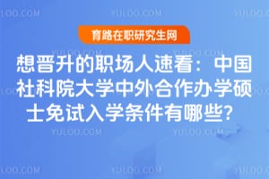 想晋升的职场人看过来,中国社科院大学中外合作办学硕士免试入学无需全国统考,为忙碌职场人提供灵活深造途径。申请需本科及以上学历学位、英语能力证明(四/六级425分及以上等,英文授课学位可免)、1年及以上工作经验(部分可放宽)。热门项目如能源管理、金融管理硕士等提供中留服认证,全年可申请,助力职场晋升。一文解析条件及项目详情,帮你判断申请资格。……