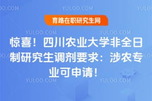 四川农业大学非全日制研究生调剂要求引发关注,预计调剂将开启,涉农专业如农业管理、农村发展等可申请。考生需满足初试成绩达A类地区国家线及拟调专业复试线、专业相同或相近且同门类、符合调入专业报考条件等核心要求。调剂专业涵盖农林特色及通用管理类,涉农专业为重点,适合相关在职人员提升能力。考生需关注信息、确认条件后在线申请,涉农专业开放为在职人员提供深造机会。……