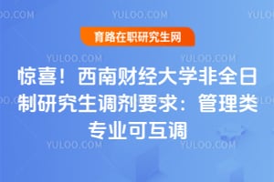 西南财经大学非全日制研究生调剂要求的最新动态为考生带来惊喜,其中管理类专业可互调规则备受关注,为考生提供更多选择。调剂需满足学历工作经验、初试成绩与专业匹配等基本条件,管理类相关专业可相互调剂但不得调入其他专业。考生需关注调剂时间流程,准备相关材料,确保符合要求。若有疑问可联系客服或填写表单获取专业解答。……