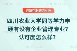 四川农业大学同等学力申硕有没有企业管理专业?有企业管理专业,隶属于工商管理一级学科。其优势在于师资团队产业研究深厚、课程适配农业、双导师制整合资源。学位在政策上获国家承认,农业领域认可度高,适合涉农企业管理者等人群。……